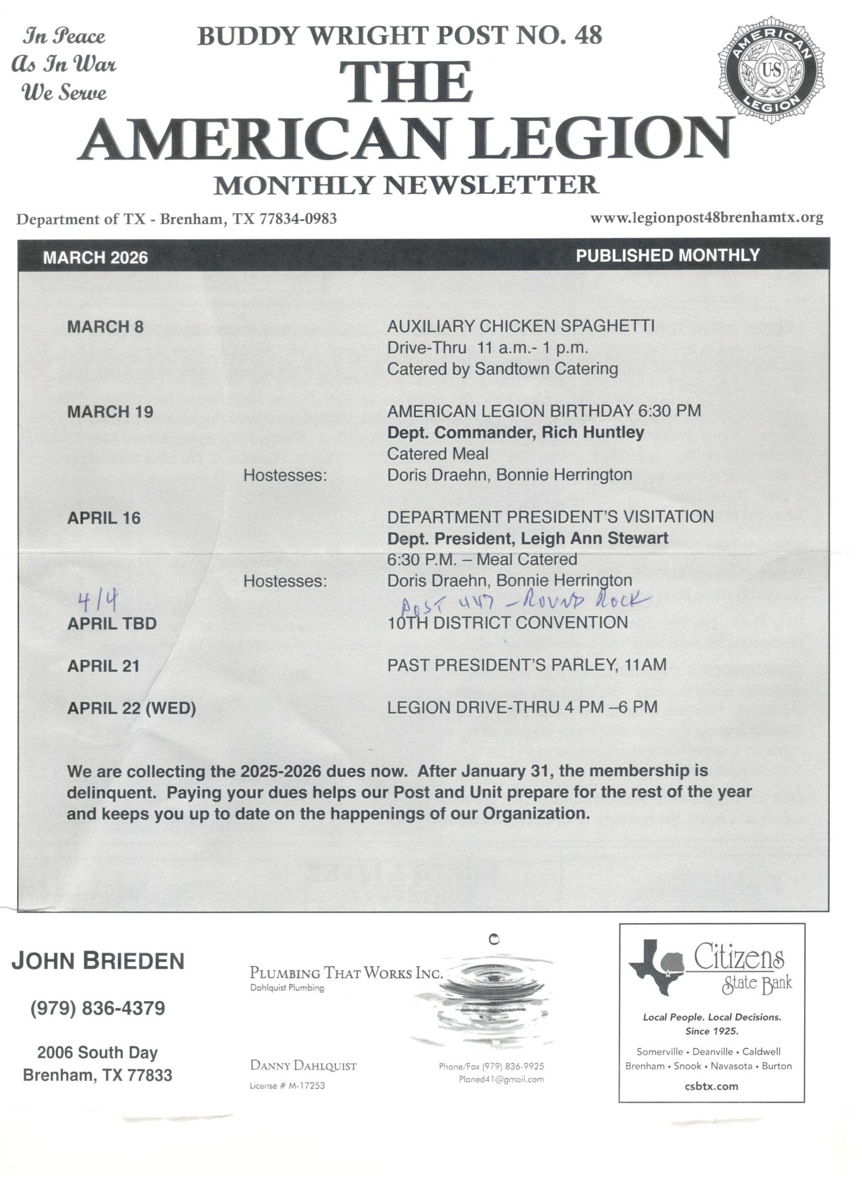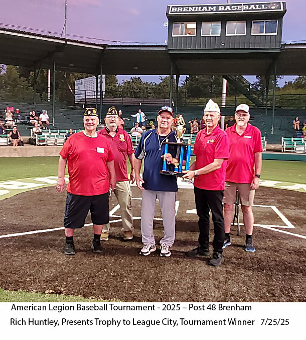 Brenham hosted the American Legion Baseball tournment. Post 48 hosted the banquet the night before the start of the tournament. Four teams advanced to compete in the tournament. League city won and Texarcana came in as runner-up. There are pictures available in the gallery.